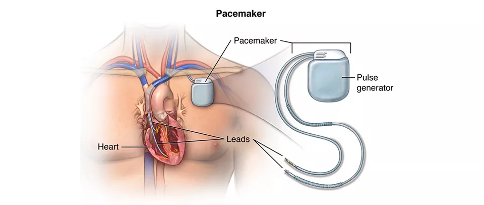 A Pacemaker is a small device that helps control your abnormal heart rhythms. It uses electrical impulses through electrodes contacting the heart muscles. It has two parts; one is a pulse generator and the other one is lead (electrodes). Both are placed under the skin to control patient’s heart rate. It is advised to be used only for a low heartbeat and heart block. It is recommended to ensure the heartbeat does not slow down.